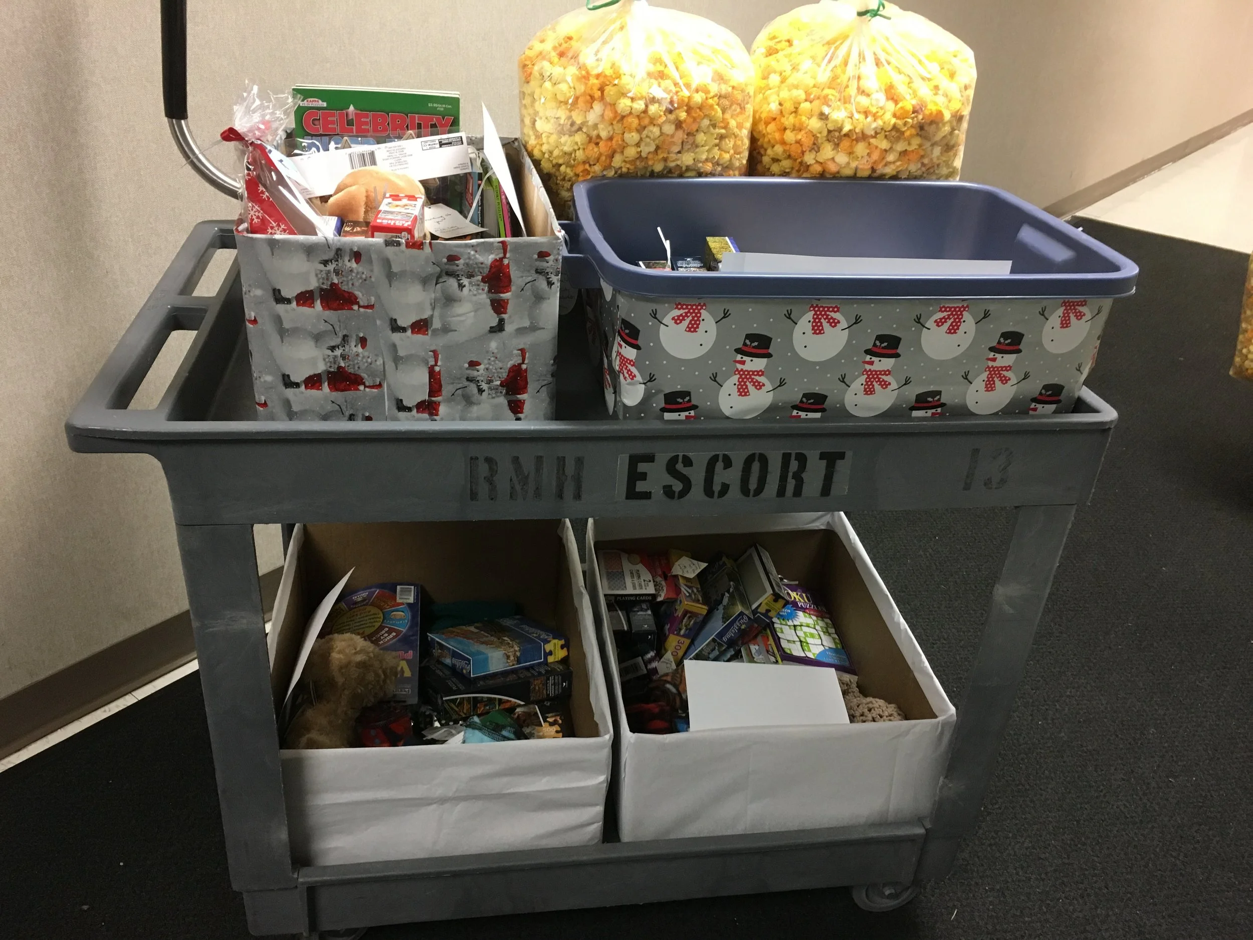 Donors from the Winter Celebrations program will drop the gifts they have sponsored for patients and their families. Volunteers will be standing in the hallway near Chip Shots and will assist with unloading gifts and carrying them to the storage room upstairs.